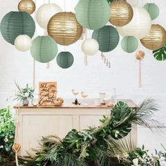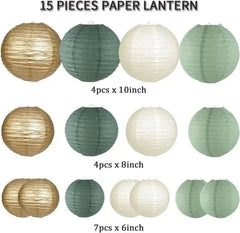 15Pcs Sage Green Paper Lantern Set – Round Hanging Party Decorations