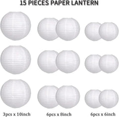 Create a warm and festive atmosphere with this set of 15 paper lanterns in soft sage green and white tones. Perfect for weddings, baby showers, birthdays, baptisms, seasonal celebrations, or any special occasion, these lanterns add an elegant touch to your décor.
