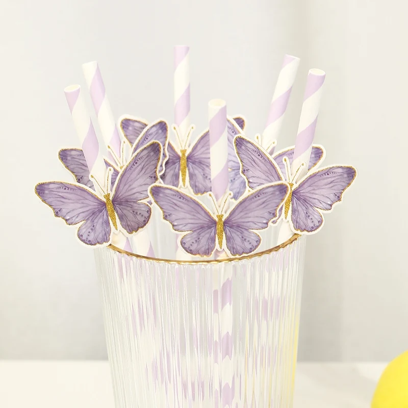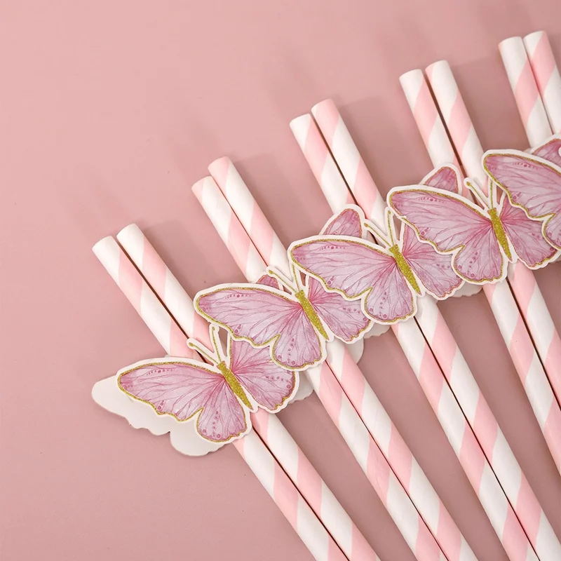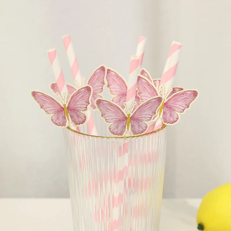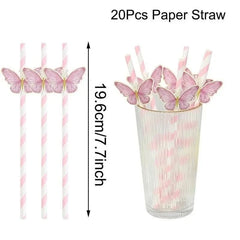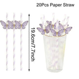 20Pcs Butterfly Paper Straws – Birthday & Baby Shower Party Decorations