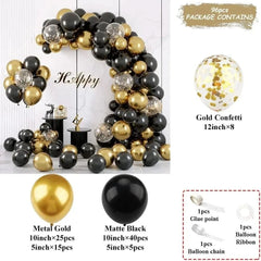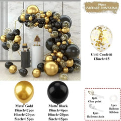 Black and Gold Balloon Arch Kit – Metallic Party Decorations for Birthday & Wedding