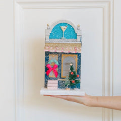 This holiday village house is styled as a festive cocktail bar and lounge, adding vibrant charm to your seasonal décor. With its cheerful exterior and detailed design, it’s the perfect accent for Christmas villages, mantels, or tabletop holiday displays. Pair it with other decorative houses to create a complete winter scene full of character and warmth.