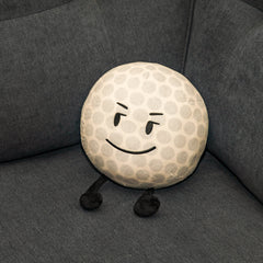 Golf Ball is a natural-born leader and inventor. With the help of her trusty co-manager Tennis Ball, and over 1 billion years of experience, this bozo-brained bossy bot is sure to round out your plush collection!