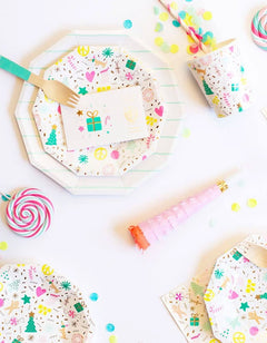 Bring cheerful holiday vibes to your table with these festive “Merry & Bright” cups. Designed with playful neon colors and shiny gold foil accents, they’re perfect for serving seasonal drinks at Christmas parties, family gatherings, or winter celebrations. Their bright and joyful design will add a special touch to your holiday décor.