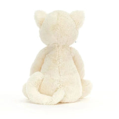 This cream kitten plush toy is a soft and cuddly feline friend, perfect for snuggles, playtime, and nursery décor. With fluffy cream-colored fur, curious eyes, a swishy tail, and tickly whiskers, it makes a comforting companion for children and cat lovers alike.