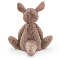 This kangaroo plush toy is a cuddly companion that comes with a baby joey tucked safely inside its tummy pouch. Made in a soft mocha tone with long ears, springy feet, and a sturdy tail for balance, it brings both comfort and imaginative play to children of all ages.