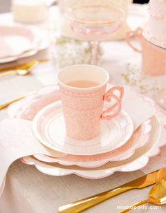 Bring a romantic and elegant touch to your celebration with these pink floral paper cups. Featuring a charming pembroke-inspired design and adhesive handles, they are perfect for serving drinks at Valentine’s Day parties, bridal showers, or any special occasion. Stylish and functional, these cups add warmth and beauty to your table setting.