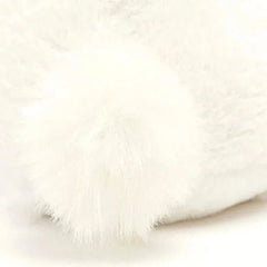 This plush bunny soft toy is crafted in a snowy white design with a soft, velvety texture. Featuring long floppy ears, marshmallow-like paws, and a glittery gold nose, it makes a charming companion for children and a cozy addition to any nursery or bedroom décor.