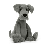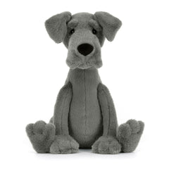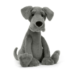 The Plush Great Dane Dog is a soft and cuddly toy designed with realistic details and a friendly appearance. Made with blue-grey plush fabric, this dog features floppy ears, stitched brows, a large black nose, and rumpled jowls for extra character. Its stitched toe details and seated pose give it a lifelike charm, while its soft texture makes it perfect for cuddles and imaginative play.