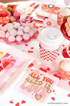 Red Check Coffee Cup Set – 16 oz (Pack of 8 with Lids & Sleeves)